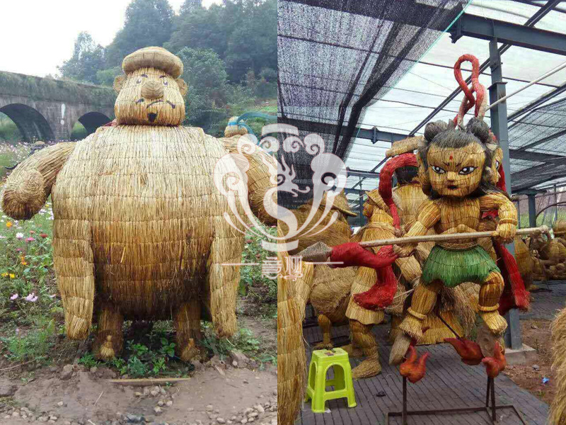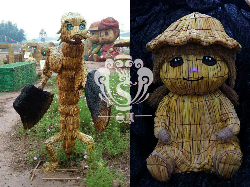 稻草人藝術(shù),不僅充分利用的稻草秸稈制作出各種有趣的形象,與此同時(shí)還能減少秸稈的焚燒,為我們的藍(lán)天白云,子孫后代做一份貢獻(xiàn)!現(xiàn)在的精致稻草人藝術(shù)通常是由專(zhuān)業(yè)美術(shù)老師的造型放樣,然后由焊工師傅焊接出立體造型造型,然后以稻草或者稻草繩為材料編捆制作而成。