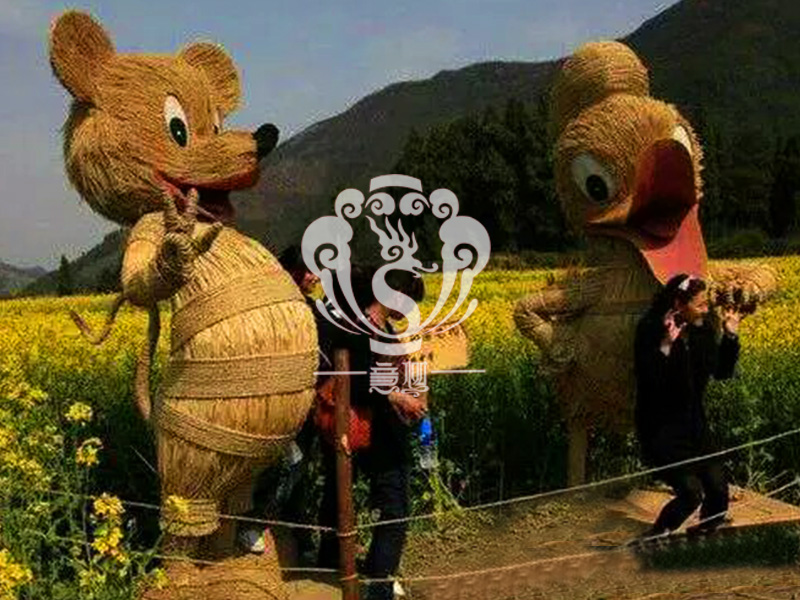 現(xiàn)在的精致稻草人藝術(shù)通常是由專業(yè)美術(shù)老師的造型放樣,然后由焊工師傅焊接出立體造型造型,然后以稻草或者稻草繩為材料編捆制作而成。
