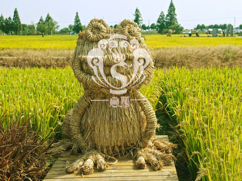 現(xiàn)在的精致稻草人藝術(shù)通常是由專業(yè)美術(shù)老師的造型放樣,然后由焊工師傅焊接出立體造型造型,然后以稻草或者稻草繩為材料編捆制作而成。