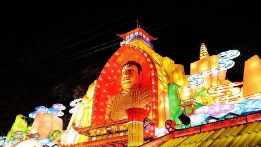 據了解,本次榮縣大佛燈會將以大佛寺景區作為依托,觀燈面積達100畝,整個燈會將全部采用佛教文化元素,打造自貢首個主題燈會。園區內將設置釋迦摩尼前世今生、吉祥寶瓶、佛手長廊等30余組大型燈組,讓游客在欣賞自貢彩燈如夢如幻的精湛工藝的同時,還能了解榮縣獨有的佛教文化。