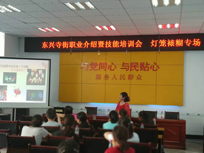 自流井區(qū)東興寺街道領(lǐng)導(dǎo)班子為豐富轄區(qū)居民業(yè)余文化生活,幫助“4050”等就業(yè)困難人員學(xué)習(xí)新的職業(yè)技能,促進(jìn)轄區(qū)貧困家庭增收,與四川思鴻建筑勞務(wù)有限公司和深圳愿望塔文化發(fā)展有限公司合作開發(fā)了此次彩燈裱糊培訓(xùn)項目。