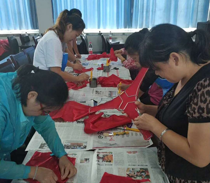 此次培訓(xùn)教學(xué)將持續(xù)一個月,培訓(xùn)知識分為理論基礎(chǔ)與實際操作,培訓(xùn)期滿將對考核合格的學(xué)員頒發(fā)培訓(xùn)結(jié)業(yè)證書。培訓(xùn)合格的學(xué)員以后可有機(jī)會從事彩燈裱糊工作。這種培訓(xùn)模式作為內(nèi)容新,形式活,效果實的一種創(chuàng)新,受到東街領(lǐng)導(dǎo)班子的高度重視和支持,當(dāng)?shù)鼐用袢罕娨彩欠e極響應(yīng),踴躍報名參加。此次培訓(xùn)學(xué)員共20名,其中還有4名男性學(xué)員和一些有過彩燈裱糊經(jīng)驗的學(xué)員,充分體現(xiàn)出這種“學(xué)習(xí)與生產(chǎn)相結(jié)合”的培訓(xùn)方式深受廣大學(xué)員的喜愛。