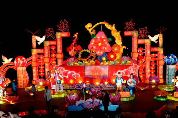 本屆燈會出現最多的元素是“花”,有月季、百合、荷花、杜鵑、木棉、桃花、蘭花、水仙等40多種花卉,這些花分布在園內23組彩燈中,營造出一個美麗的“花”“花”世界。位于正門中軸線的“荔灣挹翠”燈組中荔枝樹碩果累累,荷姿搖曳,蕩舟湖上,清風徐來,將“一灣溪水綠,兩岸荔枝紅”的意境體現得淋漓盡致。“行花街”燈組以騎樓為背景,展現百姓寫揮春、逛花街、新年舞獅的熱鬧場景,生動再現嶺南廣府地區的過年民俗傳統。“行花街”有著“行大運”的寓意,燈組也是美麗花城、魅力廣州的一個縮影。此外,還有“蝶戀花”“繁花似錦”“魚戲花間”等燈組,結合各式花語,通過高超的彩燈技術表現出鮮花的特點,讓游客感受到盛世繁花,香溢滿園的奇妙樂趣。